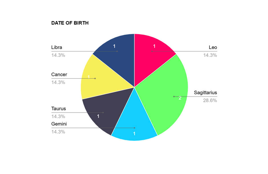 Participants have birthdays that fall within the following date ranges associated with specific Zodiac categories: