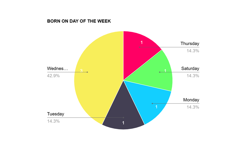 QUESTION 3.2 BORN ON DAY OF THE WEEKParticipants were born on the following days of the week: